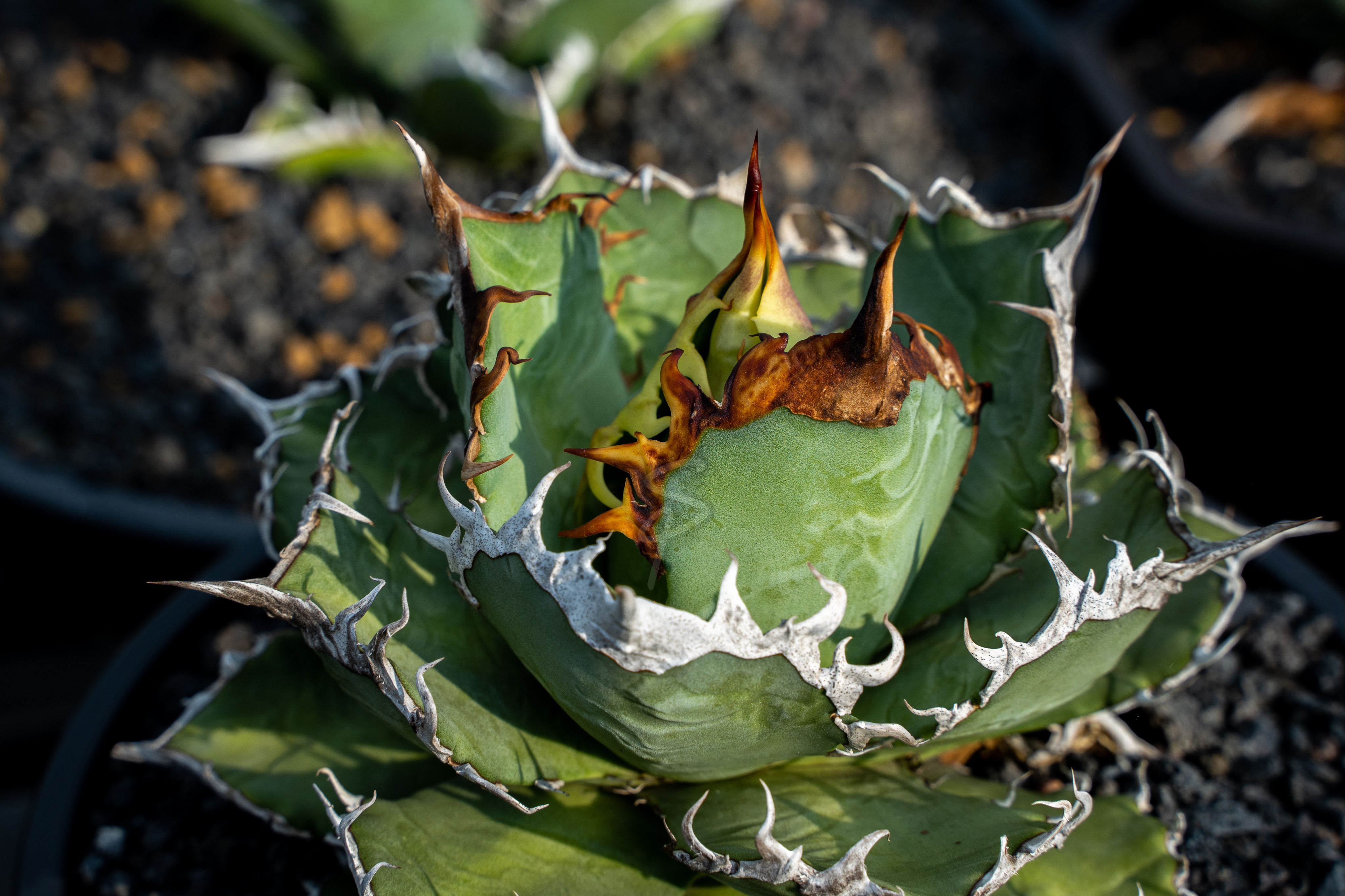 圓葉、狂刺、紅黃色的刺色、可以限盆的一品。